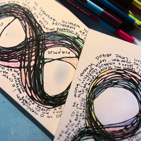 - To, co narysujesz, stanie się Twoją mapą i biologicznym dowodem dla mózgu, że “TO JUŻ JEST TWOJE”. Poczujesz to w palcach, w oddechu, w ciele.